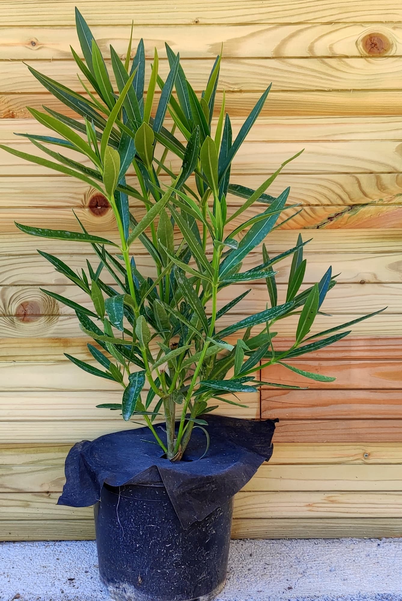 Le laurier rose, ou Nerium oleander, est un arbuste à feuillage persistant originaire du Moyen-Orient et d'Asie. Il est connu pour ses fleurs en forme de trompette colorées, qui peuvent être roses, rouges, jaunes, blanches ou même panachées. Les feuilles du laurier rose sont également persistantes, elles sont vert foncé, lisses et légèrement coriaces. Les tiges sont souvent rouges ou roses. Il est souvent utilisé pour les haies, les bordures de jardins, les jardins de rocaille, les jardins de bord de mer et les jardins d'agrément. Attention, toutes les parties de cette plante sont très toxiques si ingérées.
